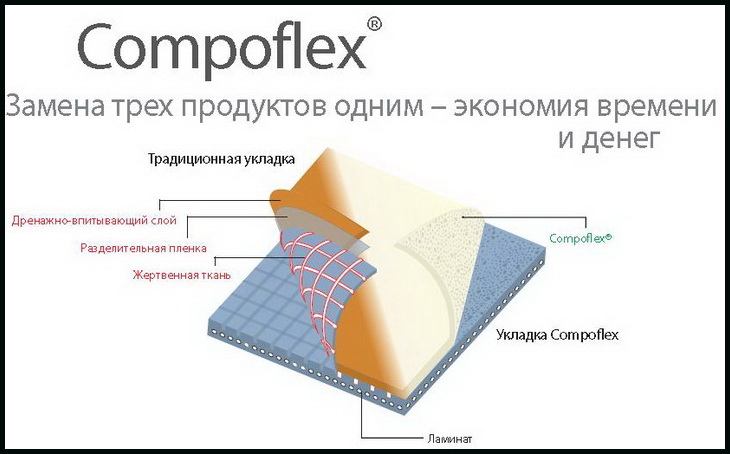 В зависимости от технологии Compoflex®, замещает несколько традиционных материалов. Несколько традиционных материалов объединены с простотой отслоения для уменьшения себестоимости