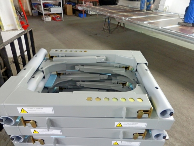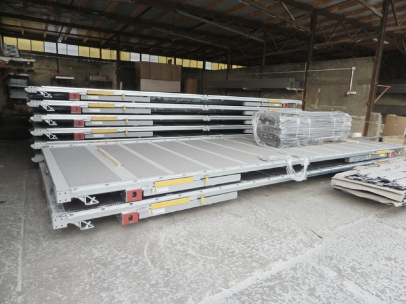 Изначально изделие полностью собирается, регулируется, подгоняется тентованное покрытие,тестируется под нагрузками, проходит контроль качества, затем разбирается и упаковывается для дальнейшей транспортировки. Таким образом появляется возможность перевозить до 10 надстроек на одном шасси автомобиля или прицепе.