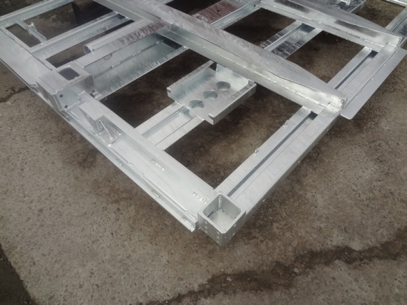 Наши рамы для прицепов, подрамники для фургонов и систем BDF, др. комплектующие и детали покрываются цинком методом горячего цинкования, путём окунания изделия в ванну с расплавленным цинком при температуре около 460 °C.